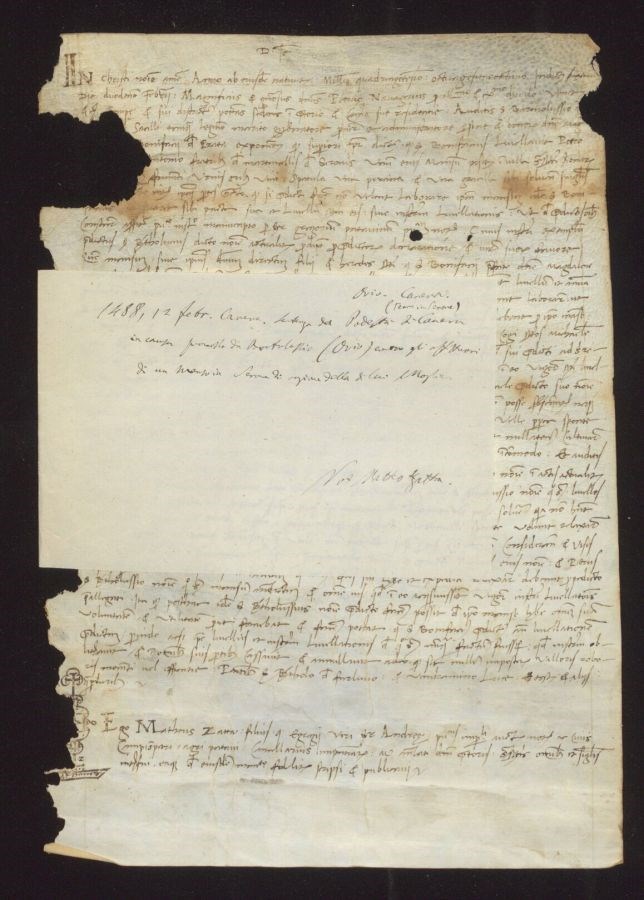 Sentenza del Podestà di Caneva in causa promossa da Bortolassio (Ovio) contro gli affittuari di un manso in Serone di ragione della di lui moglie