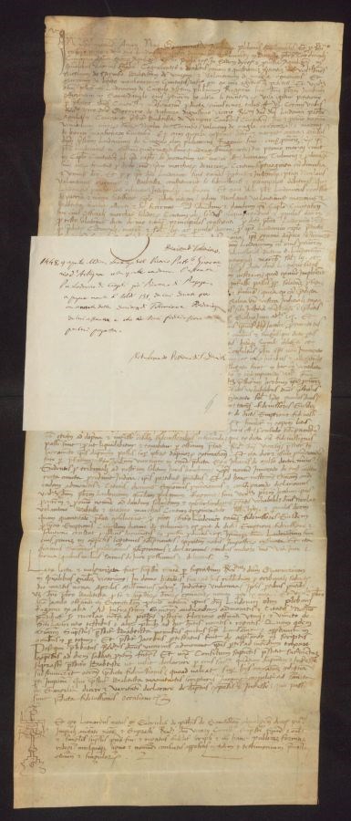 Sentenza del Vicario Patriarcale Guarnerio d'Artegna colla quale condanna l'assente Pre Lodovico di Cingoli già Pievano di Ragogna a pagare monete di soldi 138, da lui dovute per un'annata della decima di Tolmino e Predoninza da lui assunta e che ai suoi fideiussori per lui pagata