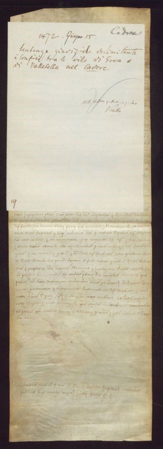 Sentenza giudiziale delimitante i confini tra le ville di Grea e di Vallesella nel Cadore