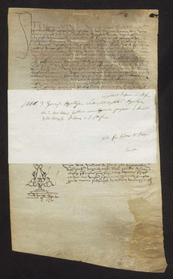 Sentenza del Capitolo di Aquileja <Aquileia> che i suoi coloni debbano annualmente pagare i sacerdoti di Risano e Santo Stefano