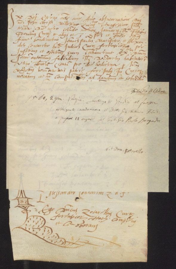 Sentenza de Giudici al forestier colla quale condannano il dottor Giovanni Antonio Fulcidio a pagare 12 ongari al nobile Giovanni Paolo Bragadin