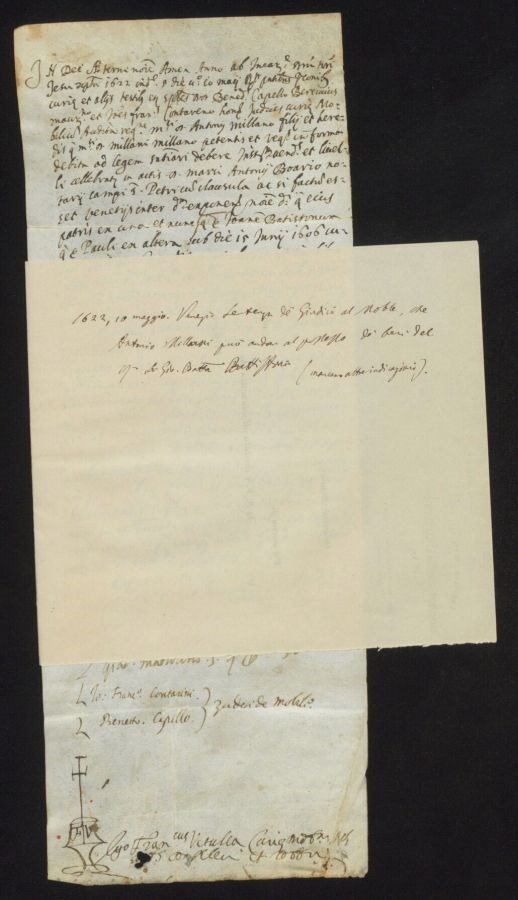 Sul cartiglio non è indicato il notaio, dal documento si legge Franciscus Vetulla