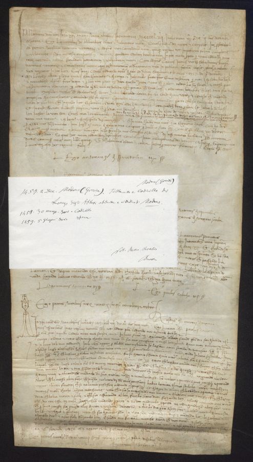 Regesto 1: Testamento e codicillo di Lorenzo degli Abbati abitante e cittadino di Modone