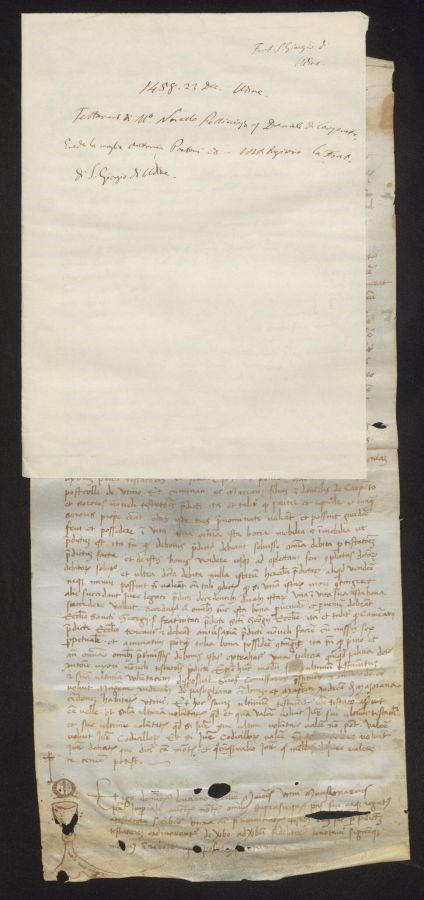 Testamento di Maestro Novello Pellicciaio quondam Daniele di Carpeneto, erede la moglie Antonia Pontoni ed in costituzione la Fraternita di San Giorgio di Udine