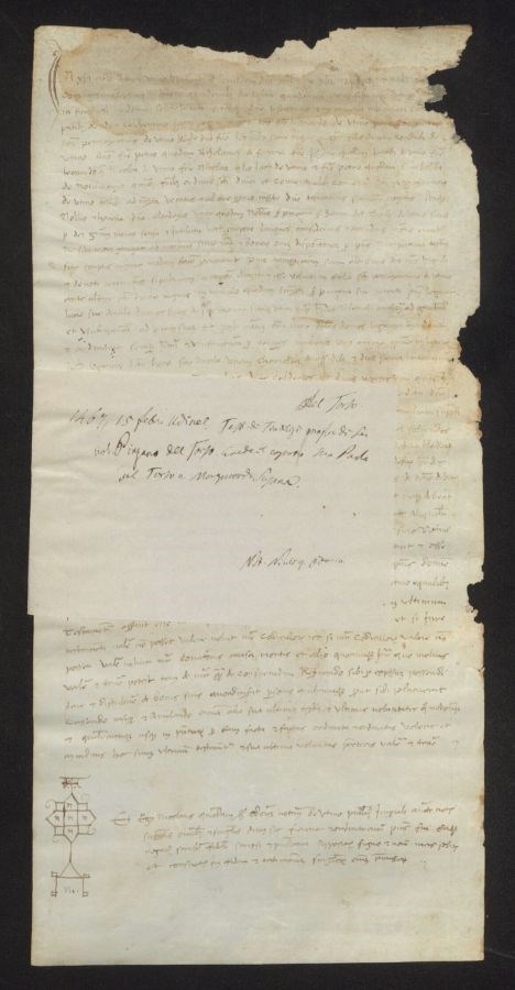 Non sono stati eseguiti interventi di restauro Presenza di una gora sul margine superiore e inchiostro sbiadito a tratti