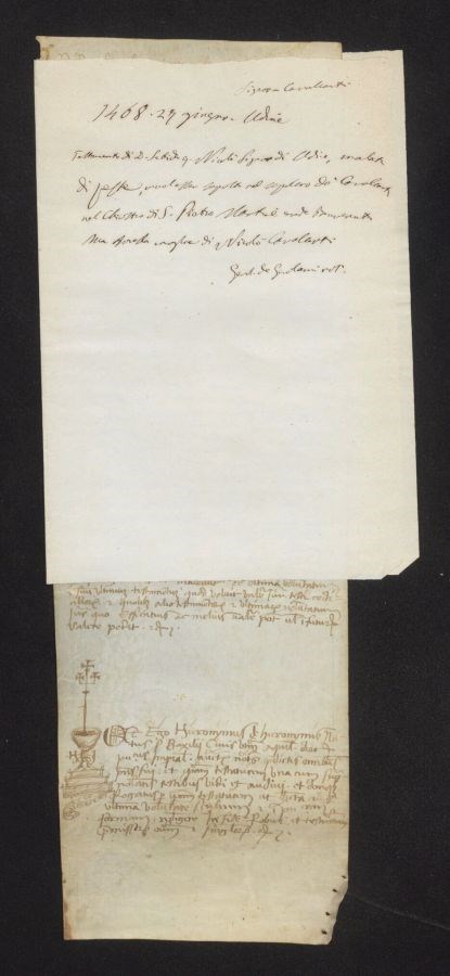 Testamento di Donna Sabide quondam Nicolò Signore di Udine, malata di peste, vuole esser sepolta nel sepolcro de' Cavalcanti nel Chiostro di San Pietro Martire erede Benvenuta sua sorella moglie di Nicolò Cavalcanti