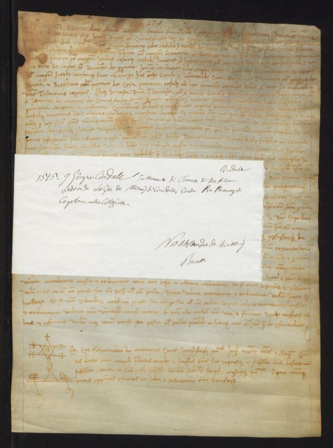 Testamento di Tomasa di Matellon vedova di ser Giovanni de Mianis di Cividale. Erede Pre Pancrazio capellano nella colleggiata