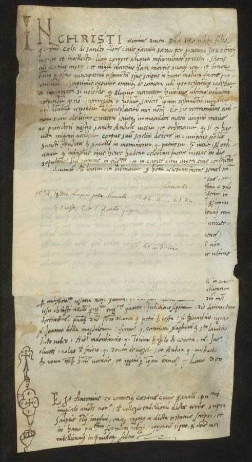 Il nome del testatore è riportato in questo modo ("M...") nel regesto originale