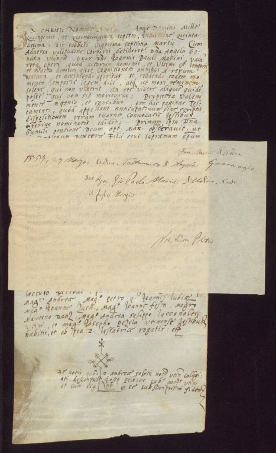 Testamento di Angela Gonana moglie del signor Giovanni Paolo Marini di Udine. Erede il figlio Marzio
