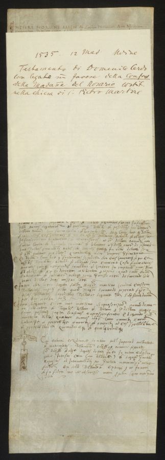Testamento di Domenico Cerdo con legato in favore della Confraternita della Madonna del Rosario costituita nella chiesa di San Pietro Martire
