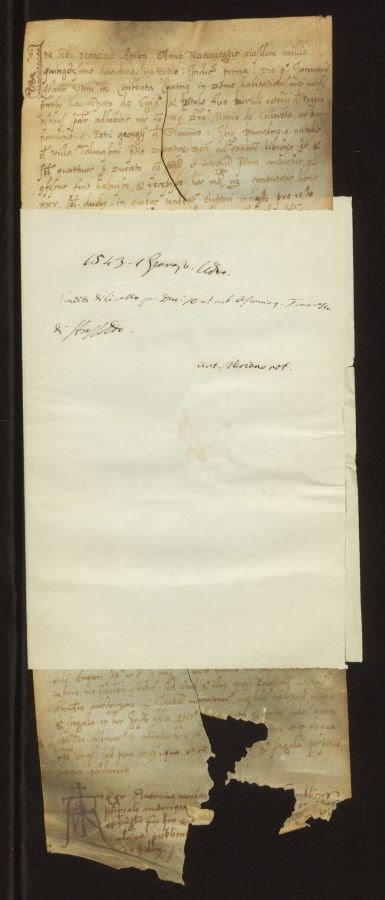 Non sono stati eseguiti interventi di restauro Pergamena mutila nella parte inferiore con ampio pregiudizio nella lettura dell&39;escatocollo; inoltre, sulla plica si osserva un taglio trasversale centrale