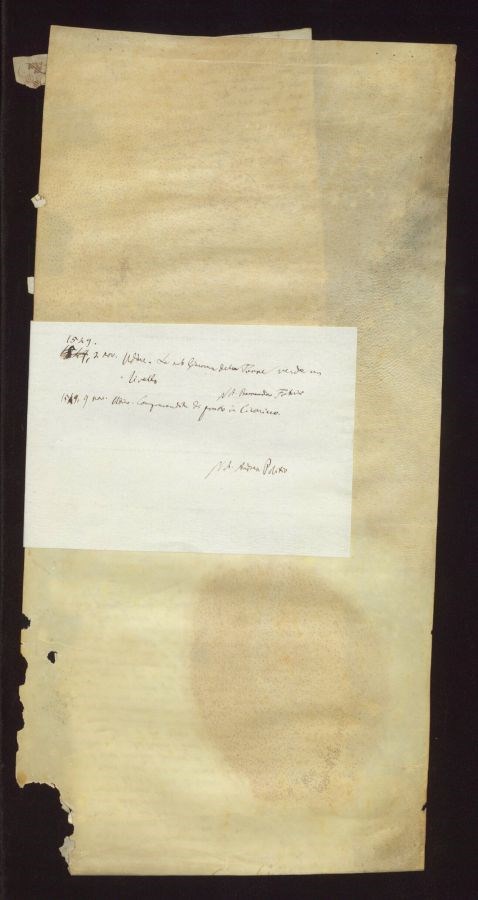 Documento composto da una pergamena cucita con un&39;altra pergamena sul lato più corto