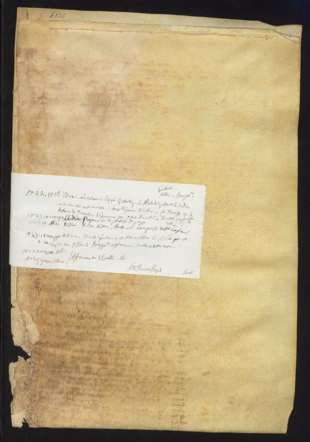 Regesto 1: Lo scolare in leggi Guberto quondam ser Nicolò de Guberti di Udine vende alcune sue case rovinate in borgo di Gemona di Udine a ser Francesco quondam ser Antonio de Franceschini di Gemona per 700 ducati. [...] Tal vendita è approvata
