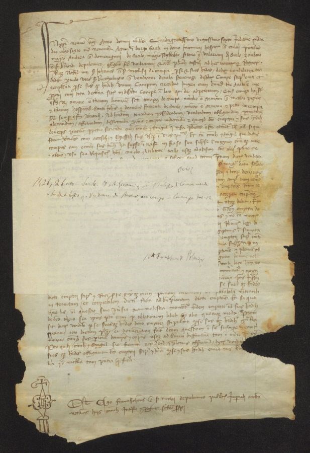 Il nobile Giovanni quondam Ser Nicolossio di Caneva vende a Ser Bortolossio quondam Vendrame di Stevenà, un campo in Caneva per ducati 14