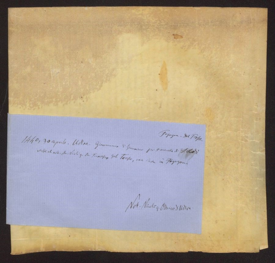 Giacomuccio di Ialmicco per 5 marche di soldi vende al nobile Ser Nicolò quondam Ser Francesco del Torso, una casa in Fagagna
