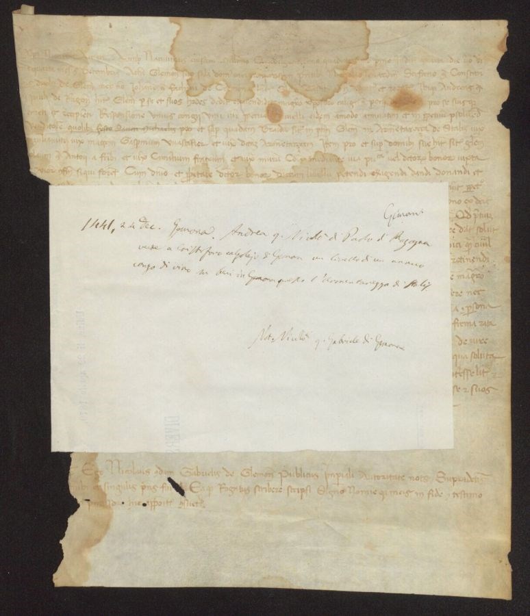Andrea quondam Nicolò di Paolo di Ragogna vende a Cristoforo calzolaio di Gemona un livello di un annuo conzo di vino su beni in Gemona presso l'Armentarezza di Stolis