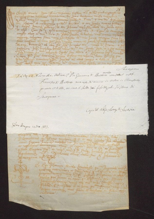 Pre Giacomo di Butrio avendo venduto al nobile Francesco di Butrio una casa di muro in Udine Ransoto? per monete 10 di soldi, non riceve il saldo dai figli del quondam Ser Tristano di Savorgnano