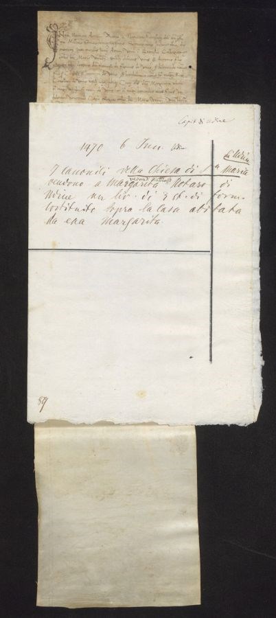 I canonici della chiesa di Santa Maria di Udine vendono a Margarita vedova di Mattiusso notaro <notaio> di Udine, un livello di 3 staio di formento <frumento> costituito sopra la casa abitata da essa Margarita