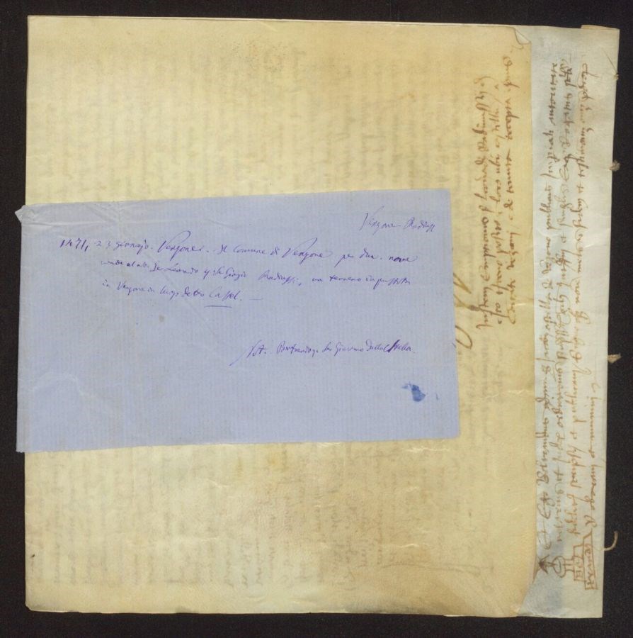 Il Comune di Venzone per ducati nove vende al nobile Ser Leonardo quondam Ser Giorgio Radiussio, un terreno in pustota in Venzone in luogo detto Castel