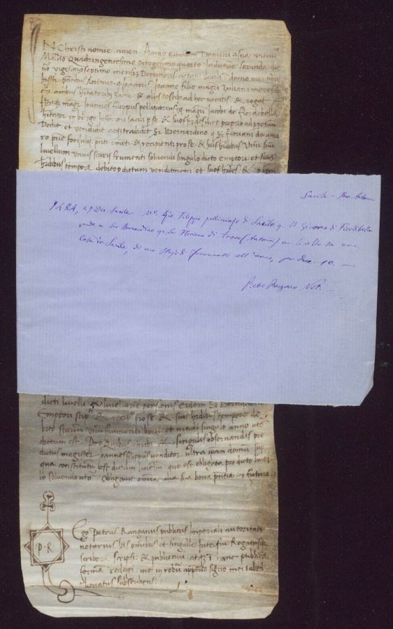 Maestro Giovanni Filippo pellicciaio di Sacile quondam Maestro Giacomo di Fiordibella vende a Ser Bernardino quondam Ser Floriano di Amaro (Antonini) un livello su una casa in Sacile, di uno staio di frumento all'anno, per ducati 10
