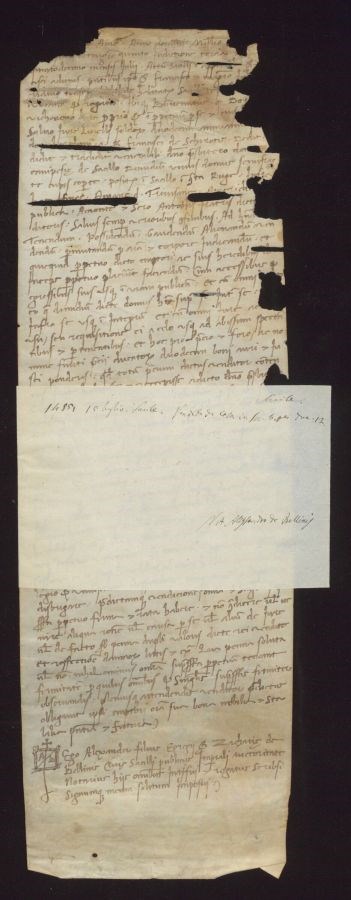 Non sono stati eseguiti interventi di restauro Presenza di numerose lacune sulla parte superiore del supporto che coinvolgono lo specchio di scrittura