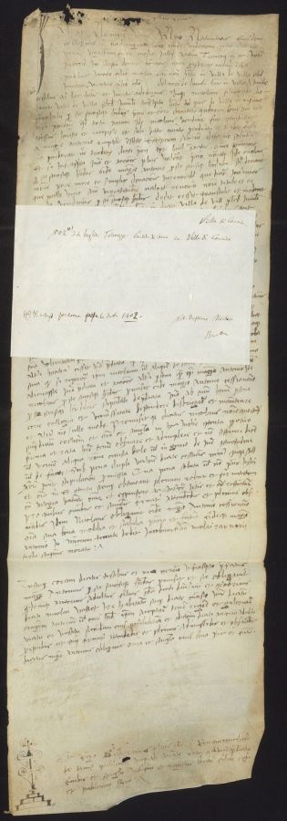 Sul cartiglio in basso a destra c'è un'annotazione: Beretta Il notaio per errore pone la data 1402
