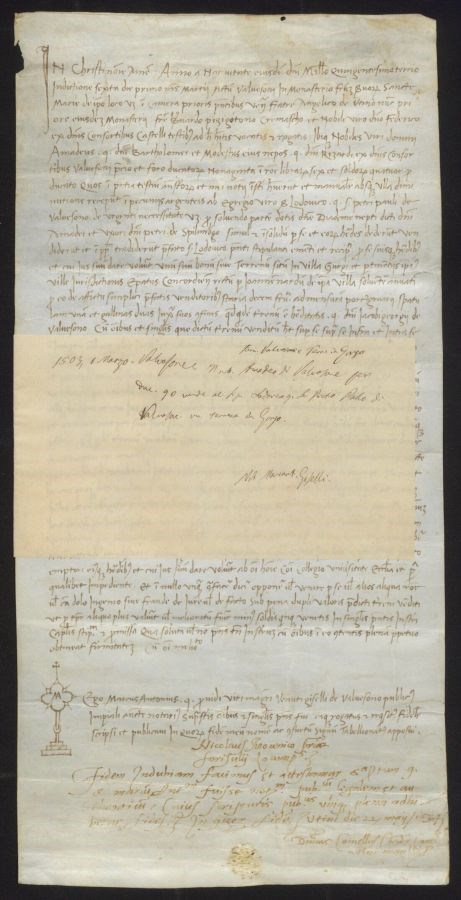 Il nobile Amadeo di Valvasone per ducati 90 vende al signor Lodovico quondam Ser Pietro Paolo di Valvasone un terreno in Gorgo