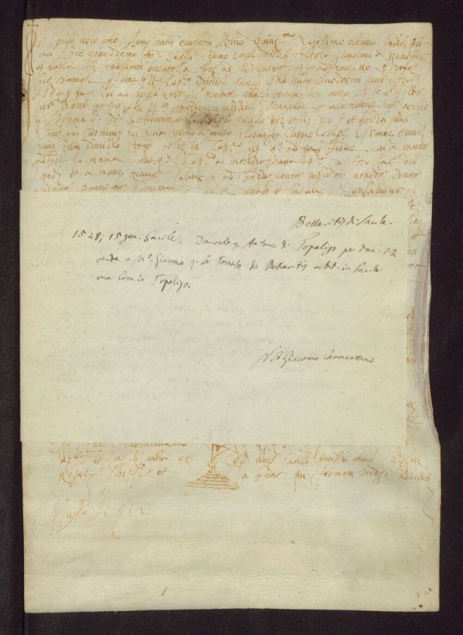 Daniele quondam Antonio di Topaligo per ducati 12 vende a Maestro Giacomo quondam Ser Tommaso de Bellavitis abitante in Sacile una casa in Topaligo