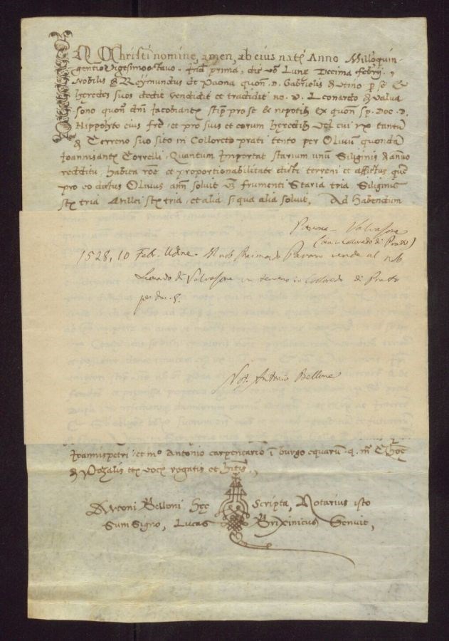 Il nobile Raimondo Pavona vende al nobile Leonardo di Valvasone un terreno in Colloredo di Prato per ducati 8