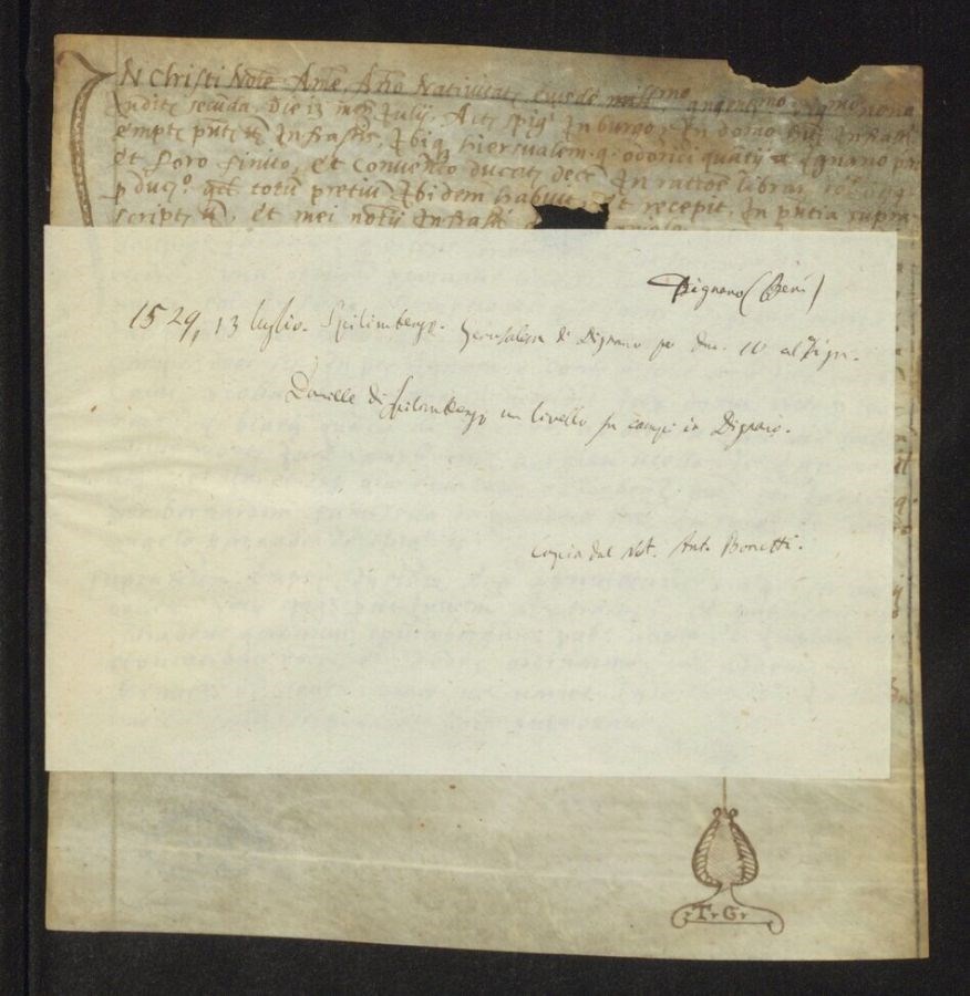 Nel regesto si riporta che il documento è una copa e viene segnalato il nome del notaio che ha redatto l'originale; tuttavia non è specificato chi abbia reaalizzato questo duplicato