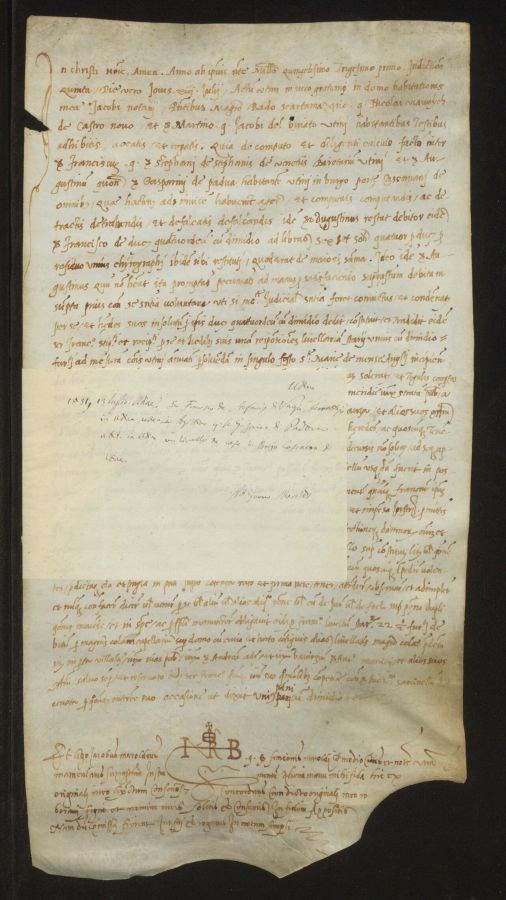 Ser Francesco de Stefanis di Venezia, berrettaio in Udine, vende a Ser Agostino quondam Ser Gasparino di Padova abitante in Udine un livello su case in Borgo Cascanan di Udine