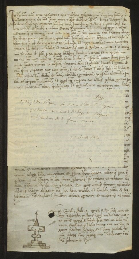 Ser Vittorio Vittorio di Venzone per ducati 10 vende a Candido del Pozzo di Venzone un livello di uno stajo di frumento annuo