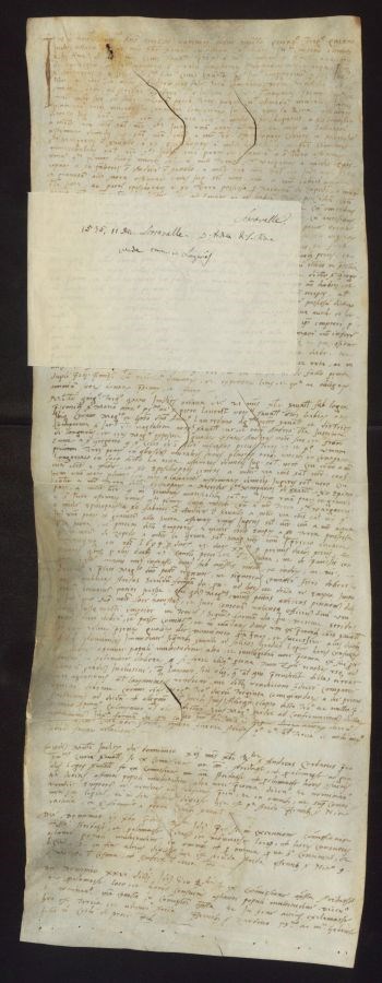Non sono stati eseguiti interventi di restauro La pergamena e il testo sono in discreto stato, ma sono presenti dei tagli lungo tutta la zona centrale del documento