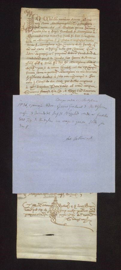 Giacoma Gambarel di Mortegliano moglie di Bernardo del Bas di Nespoledo vende ai fratelli del Tosi di Mortegliano un campo in questa villa per ducati 8