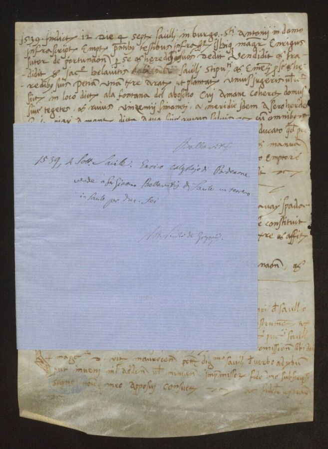 Enrico calzolajo di Pordenone vende a ser Giacomo Bellavitis di Sacile un terreno in Sacile per ducati sei
