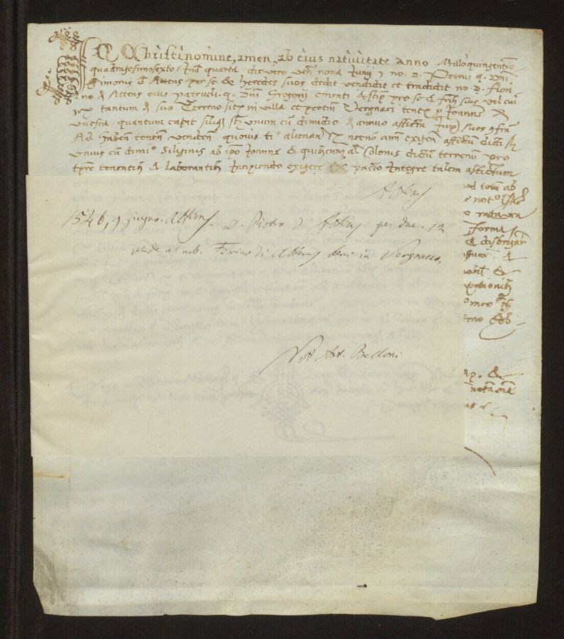 Dominus Pietro d'Attems per ducati 12 vende al nobile Fiorino di Attems beni in Vergnacco