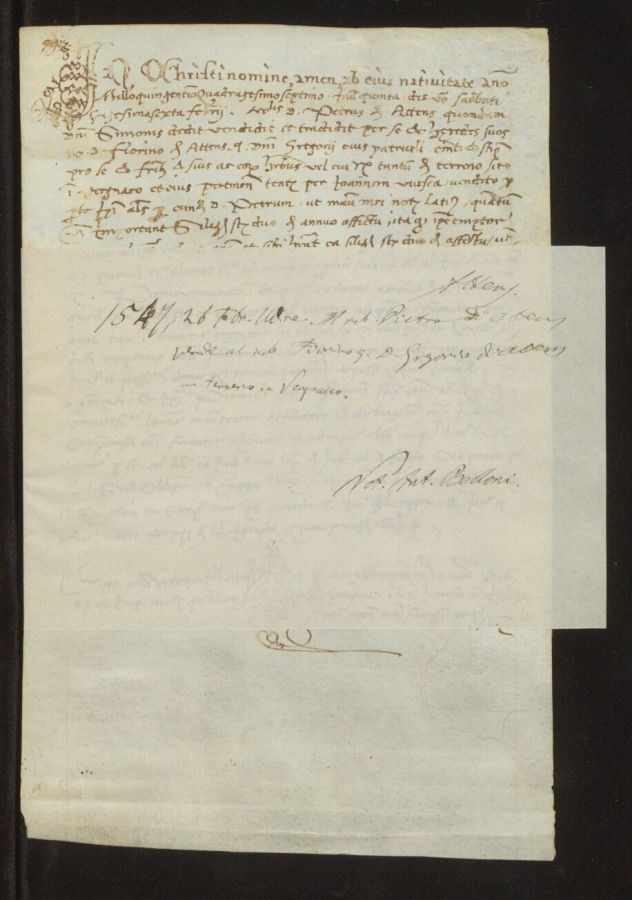 Il nobile Pietro di Attems vende al nobile Fiorino quondam Dominus Gregorio di Attems un terreno in Vergnacco