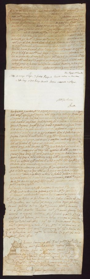 In corrispondenza della parte lacunosa della pergamena sul recto inferiore è incollata una carta