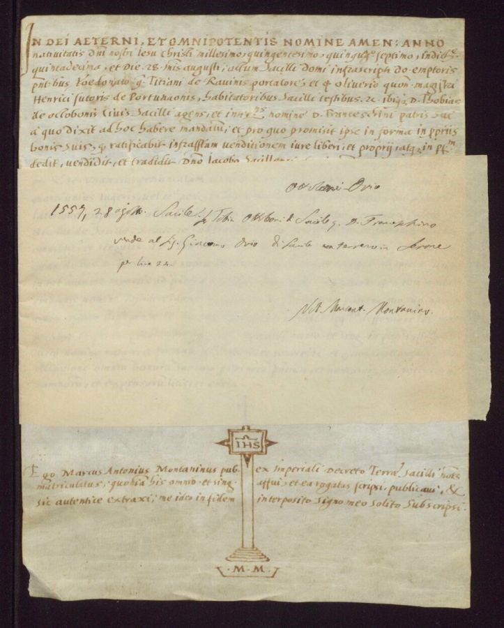 Ser Tobia Ottoboni di Sacile quondam dominus Franceschino vende al sognor Giacomo Ovio di Sacile un terreno in Sarone per lire 24