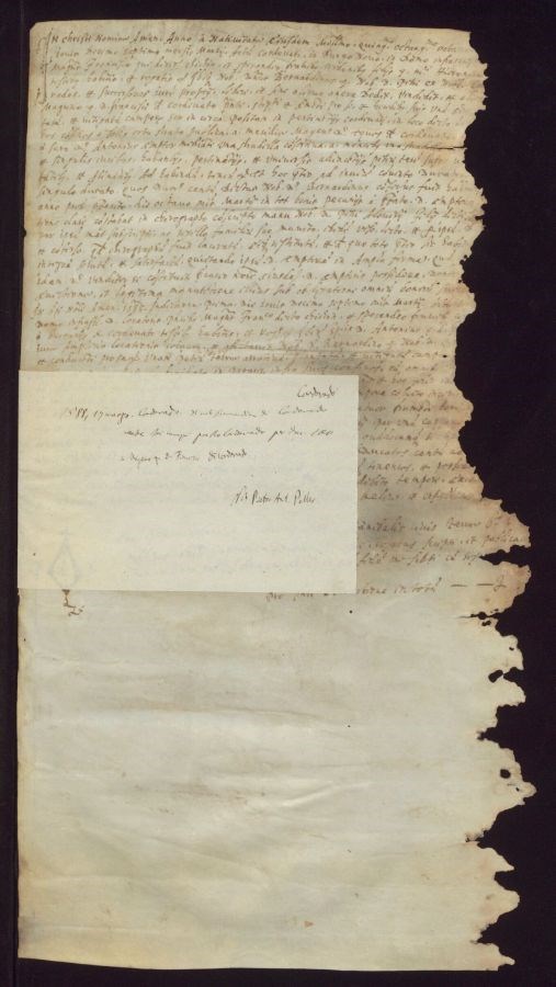 Non sono stati eseguiti interventi di restauro Lungo il lato destro sono presenti numerosi strappi e una discreta sezione di testo è andata persa