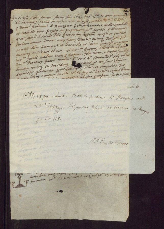 Battista Beltrami di Ranzano vende a Maestro Giuseppe Scalzamitto di Sacile un terreno in Ranzano per lire 108