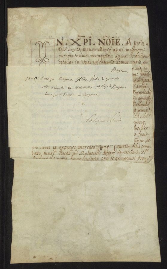 Il cavalier Pietro di Grumolo vende a Camillo de Malatestis calzolajo di Bergamo alcune parti di casa in Bergamo
