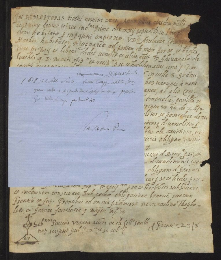 Andrea Corazza abitante in Brugnera vende a ser Gerardo de Loschis dei campi presso San Giovanni della Livenza per ducati 40