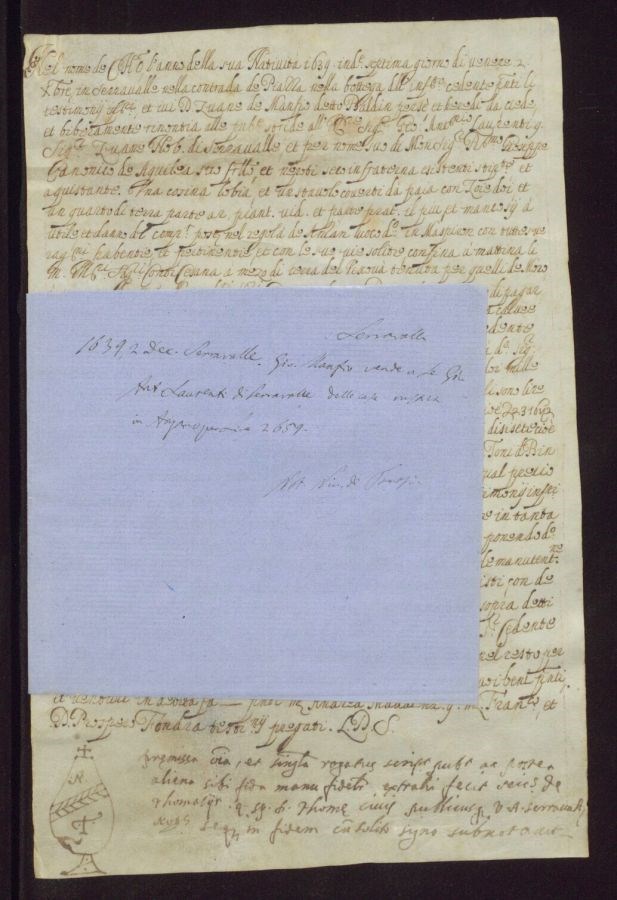 Giovanni Manfio vende a ser Giovanni Antonio Laurenti di Serravalle delle case rustica [sic] in Anzano per lire 2659