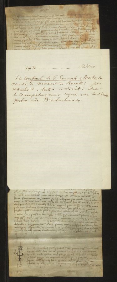 La Confraternita di Santi Gervasio e Protasio vende a Minuscio Borelli per marche 2, tutti i diritti che le competevano sopra un sedime posto in Pratochiuso