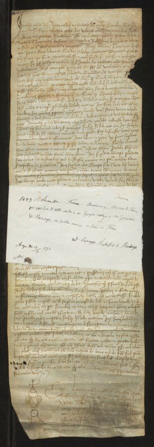 Domenico quondam Merico di Fanna per 100 lire di soldi vende a Ser Giorgio notajo quondam Ser Giacomo di Maniago, un livello annuo su beni in Fanna