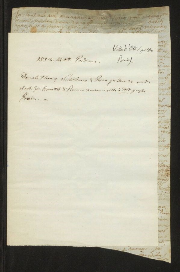 Daniele Flora quondam Nicolò Corneo di Porcia per ducati 24 vende al nobile Giovanni Brunetto di Porcia un terreno in Villa d'Olt presso Porcia