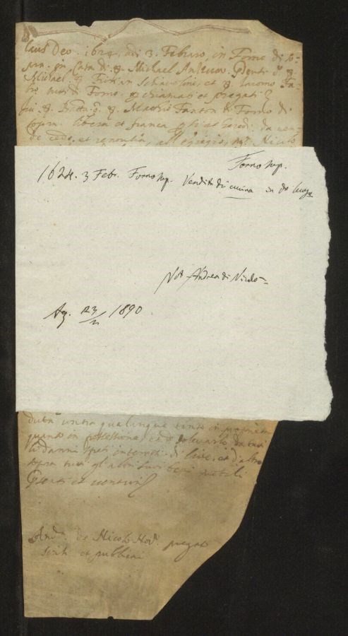 Nel regesto "detto luogo" è riferito a Forni di Sopra, data topica Nel cartiglio in basso è presente un'annotazione: Acquistato 23/2 1890