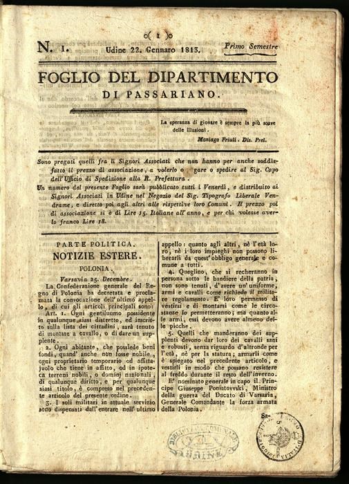 Foglio del Dipartimento di Passariano