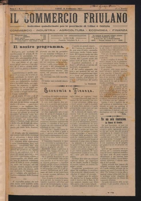 bollettino per le province di Udine e Gorizia sul commercio, industria, agricoltura, economia, finanza